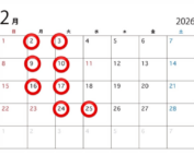 ⭕印が休業日です。2月は毎週連休になりますのでご利用のお客様にはご不便おかけいたします。 予約なども早めをお勧めしております。