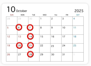 🎃10月のお知らせ🎃 md_user2025-10-04T07:45:58+09:002025/10/04|お知らせ| View Larger Image ⭕印が休業日です。今月も連休がありますのでご予約等は早めをお勧めしております。 営業時間 10時〜19時